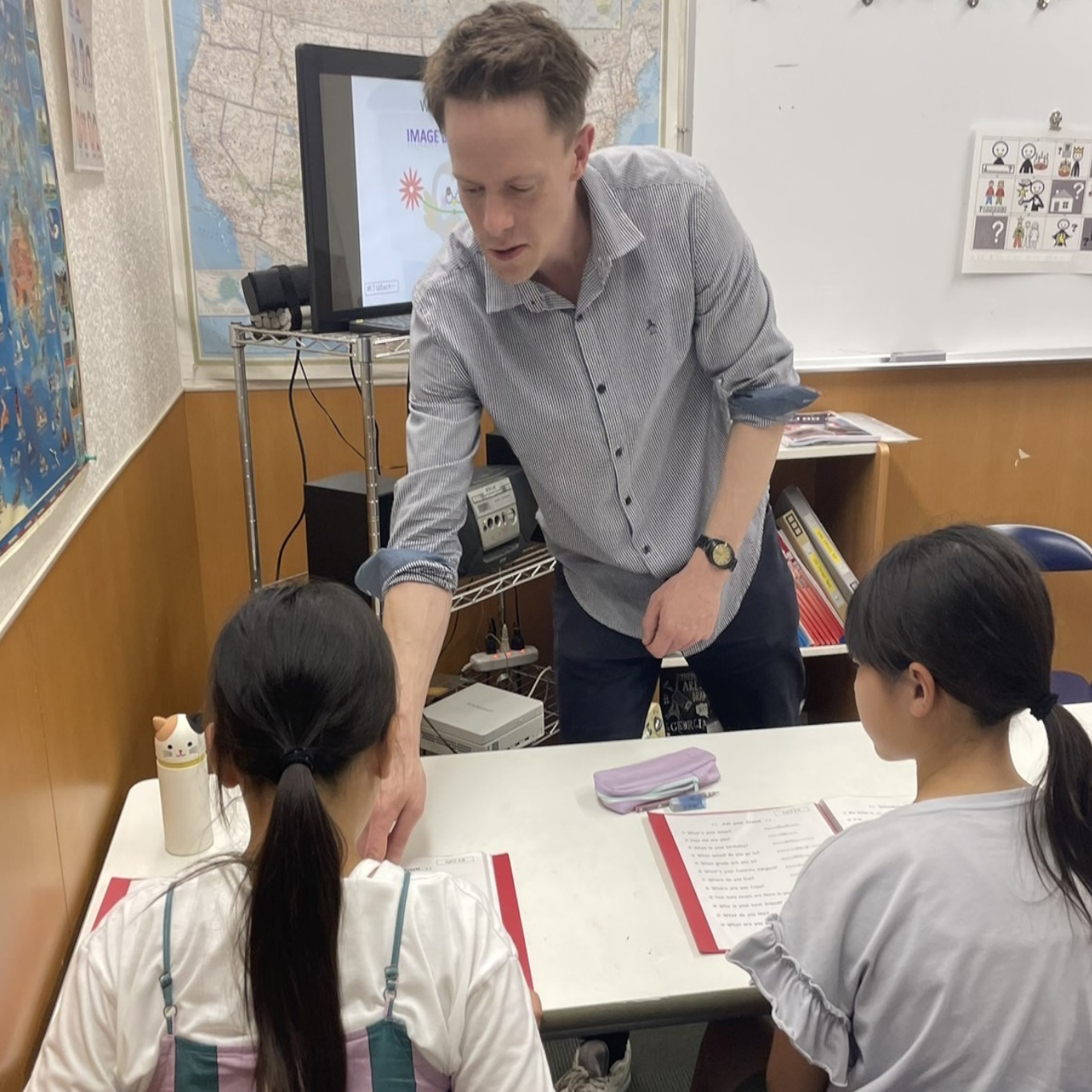 KGCではネイティブ講師と日本人講師が交互に入るチーム指導を行なっています。ネイティブ講師が自然な英語で楽しく指導し、日本人講師はオリジナルメソッドに基づく文法を指導し、理解力をチェックします。