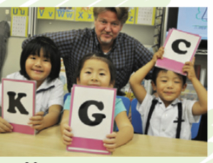 KGCではネイティブ講師と日本人講師が交互に入るチーム指導を行なっています。ネイティブ講師が自然な英語で楽しく指導し、日本人講師はオリジナルメソッドに基づく文法を指導し、理解力をチェックします。